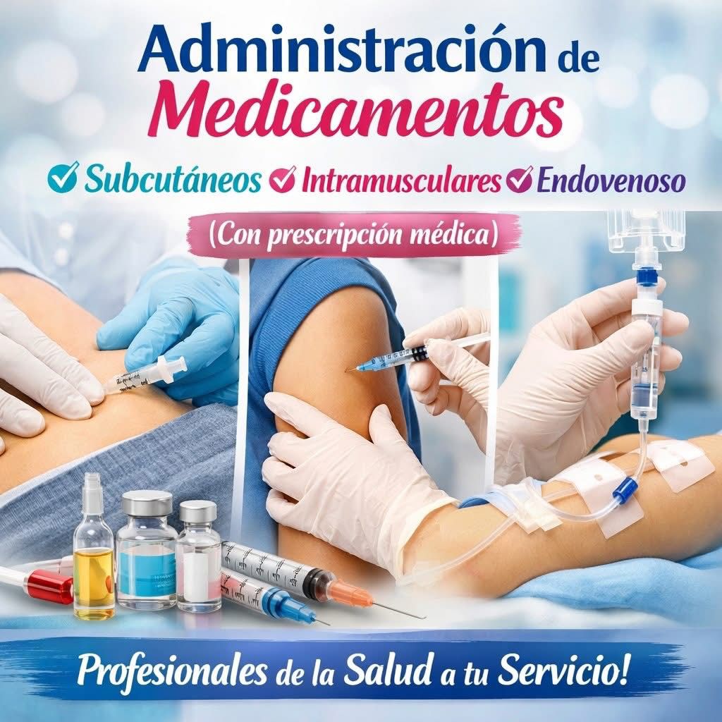 Administración de medicamentos EV, IM, SC y cuidados básicos profesionales.